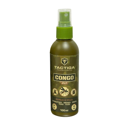 Defend yourself against biting insects with Tactiga CONGO 2-in-1, a dual-action formula that not only repels but also kills mosquitoes, midges, gnats, ticks, and flies. Built for tactical reliability and long-lasting outdoor protection, this spray is the ultimate companion for survival, training, and adventure.